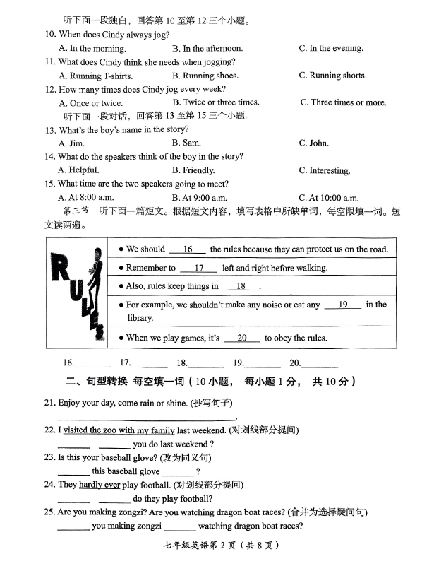 2024-2025學(xué)年河南洛陽七年級下學(xué)期英語期末真題(圖片版)(2)