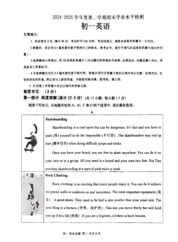 資料內(nèi)容:【25年 初一 初二 初三期末考試真題】