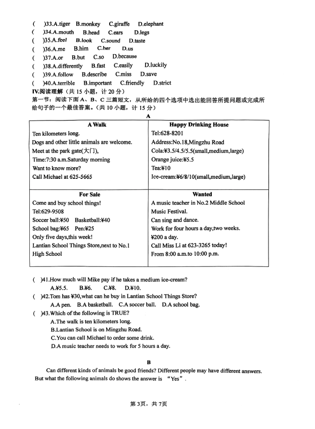 2024-2025學年陜西安康漢濱高新中學七年級下學期英語期末真題(圖片版)(3)
