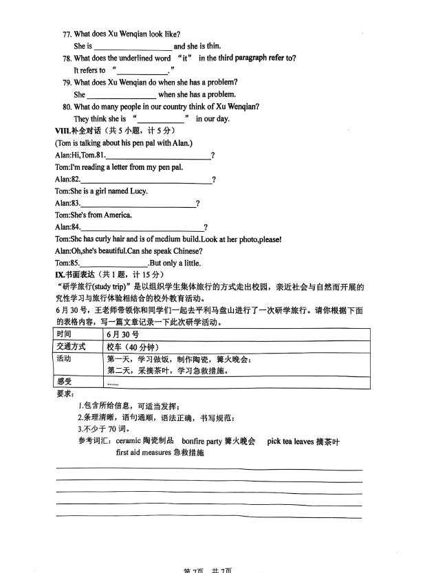 相關(guān)推薦:2024-2025學(xué)年全國(guó)各省市七年級(jí)下冊(cè)各科期末真題及答案匯總