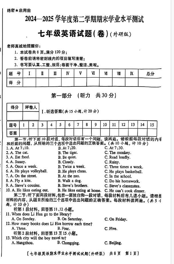 相關(guān)推薦:2024-2025學(xué)年全國各省市七年級下冊各科期末真題及答案匯總