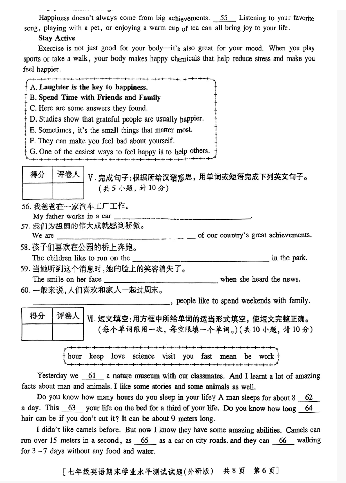初中期末試題