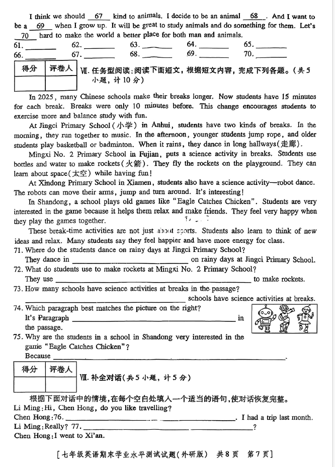相關(guān)推薦:2024-2025學(xué)年全國各省市七年級下冊各科期末真題及答案匯總