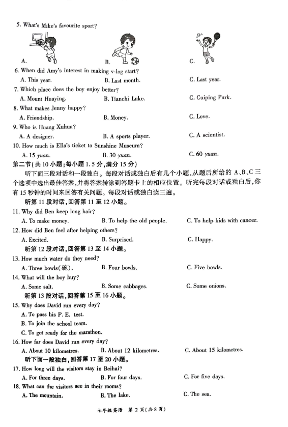 初中期末試題