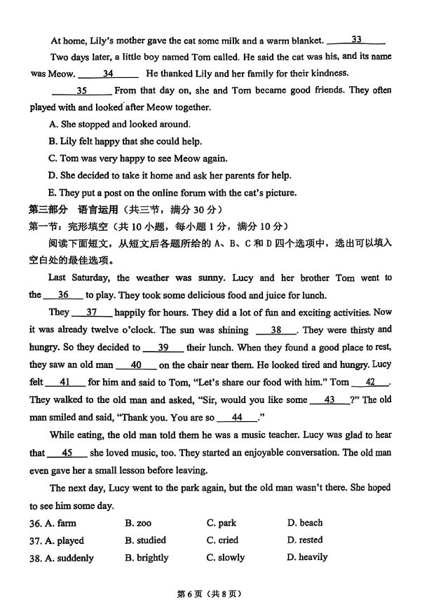 2024-2025學年浙江慈溪七年級下學期英語期末真題(圖片版)(6)
