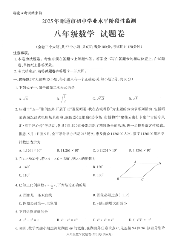 中考網(wǎng)整理了關(guān)于2024-2025學(xué)年云南昭通昭陽區(qū)八年級下學(xué)期數(shù)學(xué)期末真題(圖片版),希望對同學(xué)們有所幫助,僅供參考。