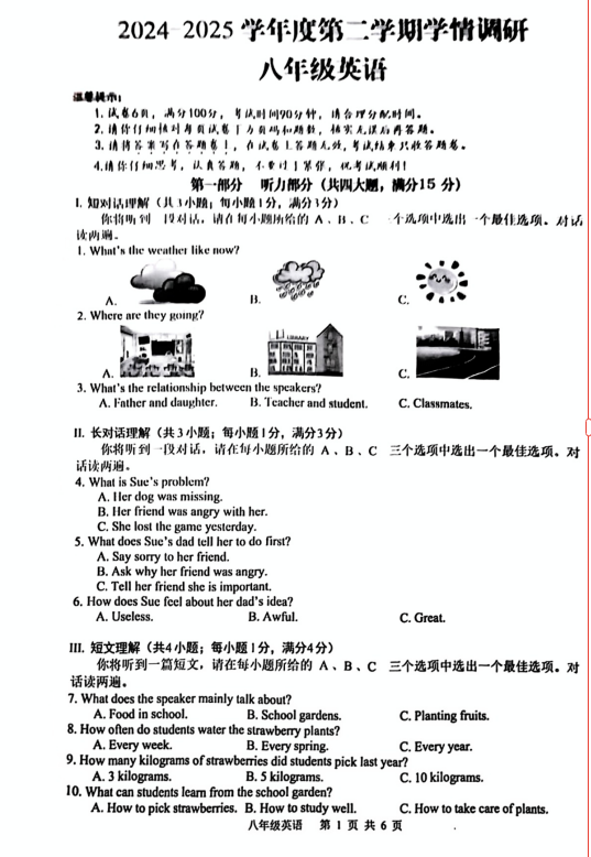 資料內(nèi)容:【25年 初一 初二 初三期末考試真題】