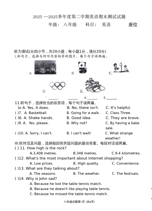 中考網(wǎng)整理了關于2024-2025學年甘肅白銀十一中八年級下學期英語期末真題(圖片版),希望對同學們有所幫助,僅供參考。