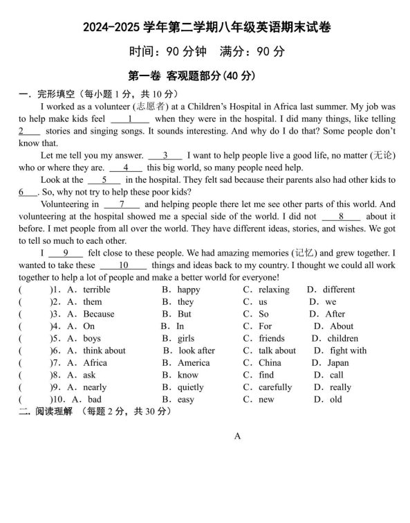中考網(wǎng)整理了關于2024-2025學年甘肅蘭州城關區(qū)天慶實驗中學八年級下學期英語期末真題(圖片版),希望對同學們有所幫助,僅供參考。