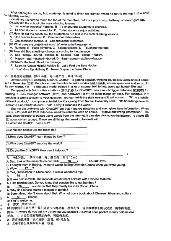相關(guān)推薦:2024-2025學(xué)年全國各省市七年級下冊各科期末真題及答案匯總