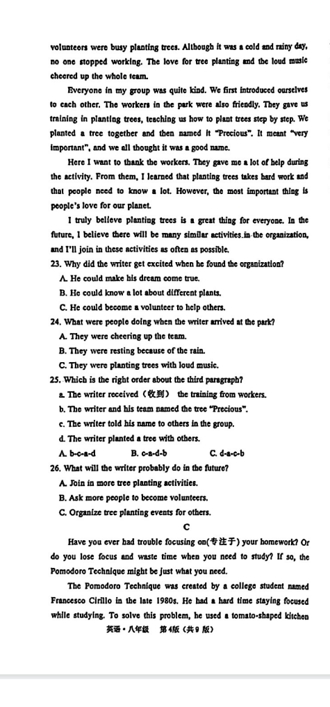 中考答題技巧