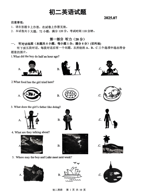 資料內(nèi)容:【25年 初一 初二 初三期末考試真題】