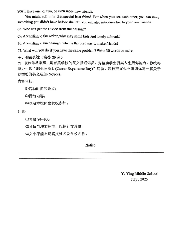 資料內(nèi)容:【25年 初一 初二 初三期末考試真題】