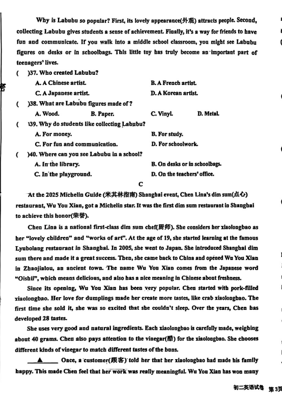 初中期末試題