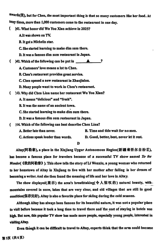初中期末試題