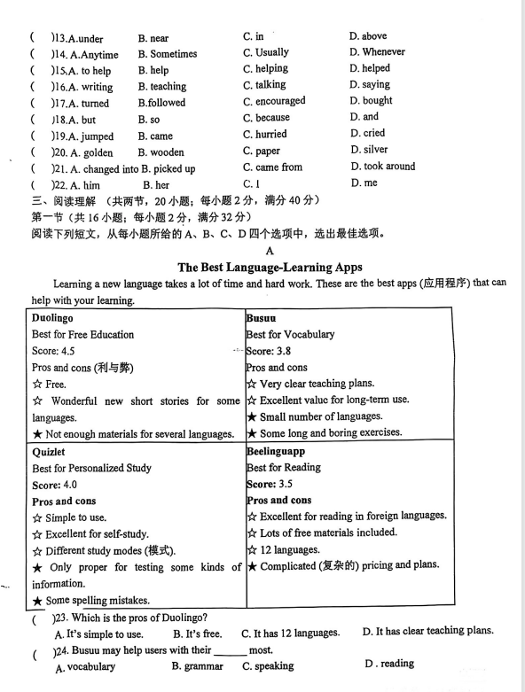 初中期末試題