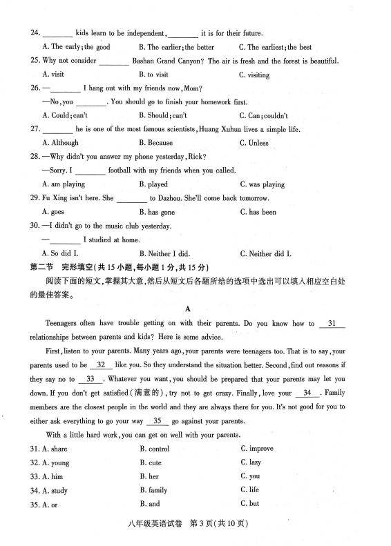2024-2025學(xué)年四川達(dá)州宣漢縣八年級(jí)下學(xué)期英語(yǔ)期末真題(圖片版)(3)