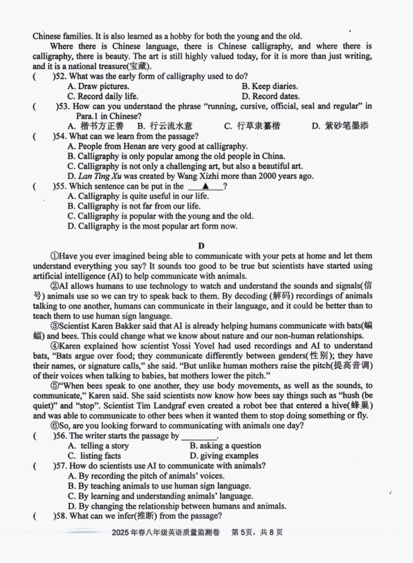 2024-2025學(xué)年重慶梁平區(qū)八年級(jí)下學(xué)期英語(yǔ)期末真題(圖片版)(5)