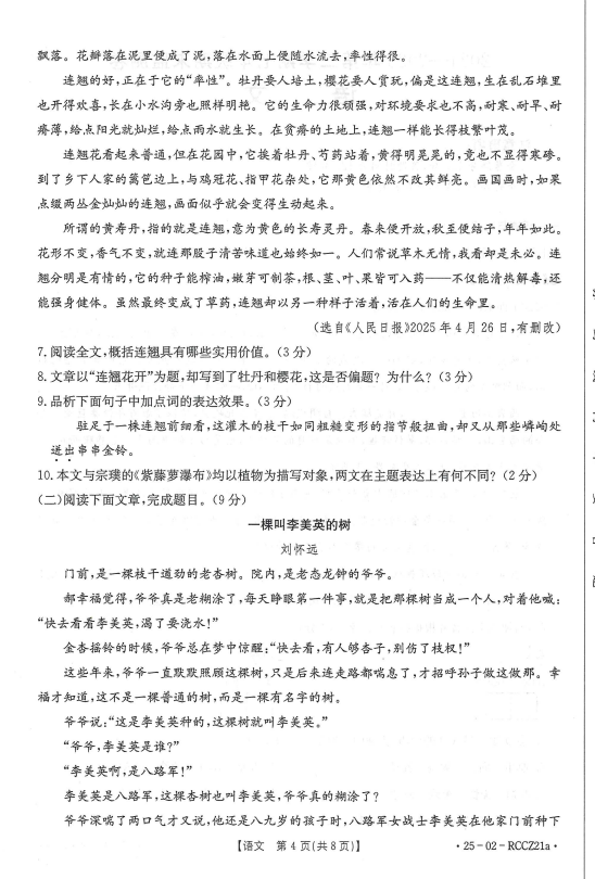 2024-2025學(xué)年甘肅定西渭源縣七年級(jí)下冊(cè)語(yǔ)文期末真題(圖片版)(4)