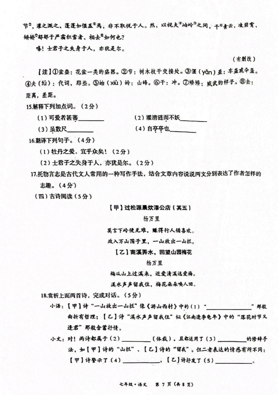 初中期末試題