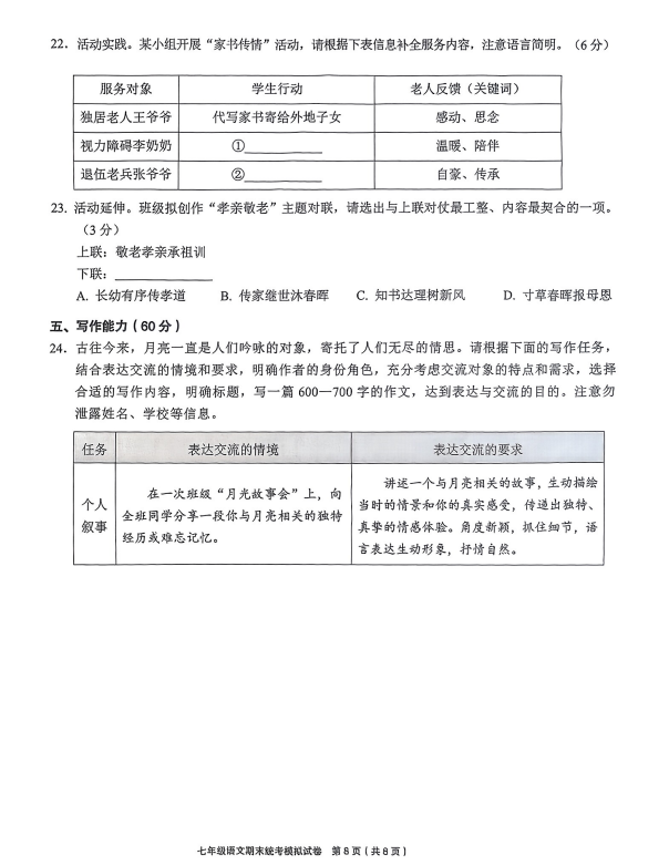 相關(guān)推薦:2024-2025學(xué)年全國(guó)各省市七年級(jí)下冊(cè)各科期末真題及答案匯總
