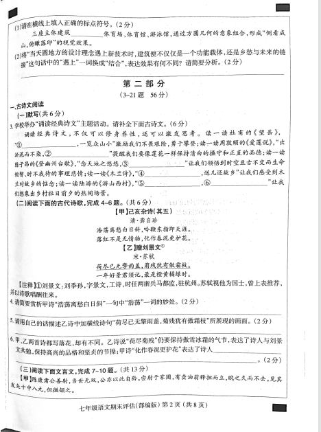 2024-2025學年河北張家口赤城縣七年級下冊語文期末真題(圖片版)(2)