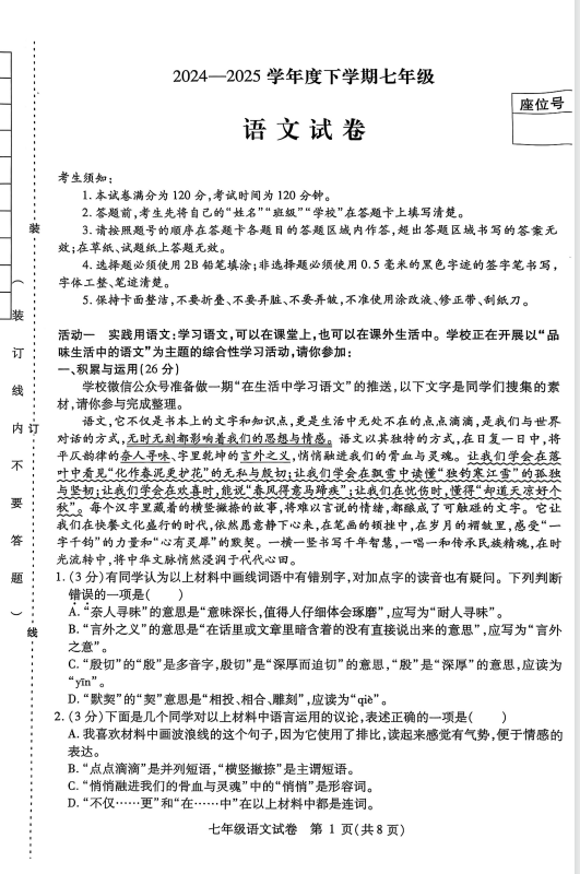 中考網(wǎng)整理了關(guān)于2024-2025學(xué)年黑龍江哈爾濱南崗區(qū)七年級下冊語文期末真題(圖片版),希望對同學(xué)們有所幫助,僅供參考。
