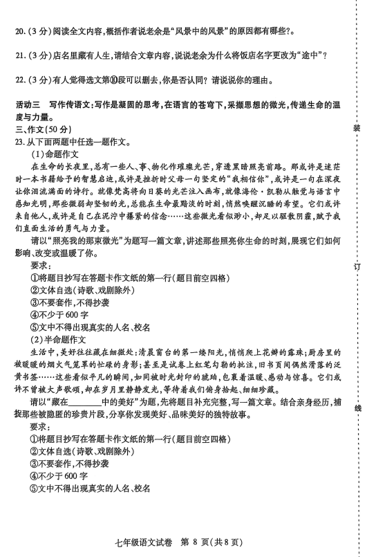 相關(guān)推薦:2024-2025學(xué)年全國(guó)各省市七年級(jí)下冊(cè)各科期末真題及答案匯總