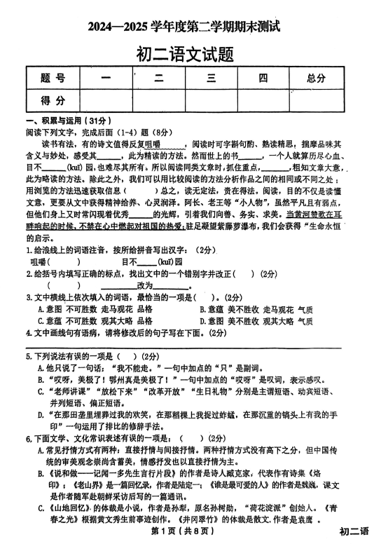 中考網(wǎng)整理了關(guān)于2024-2025學年黑龍江綏化望奎縣七年級下冊語文期末真題(圖片版),希望對同學們有所幫助,僅供參考。