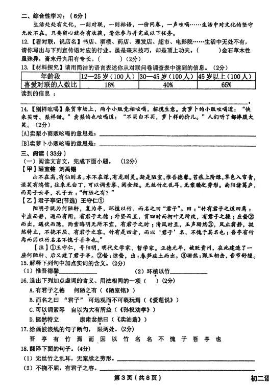 初中期末試題