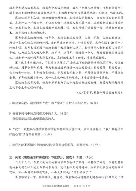 2024-2025學(xué)年湖北武漢新洲區(qū)陽(yáng)邏街七年級(jí)下冊(cè)語(yǔ)文期末真題(圖片版)(3)