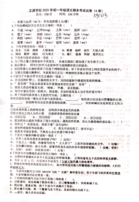 中考網(wǎng)整理了關(guān)于2024-2025學(xué)年湖南衡陽耒陽市正源學(xué)校七年級(jí)下冊語文期末真題(圖片版),希望對(duì)同學(xué)們有所幫助,僅供參考。