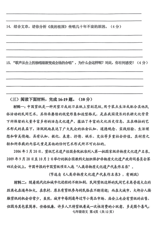 初中期末試題