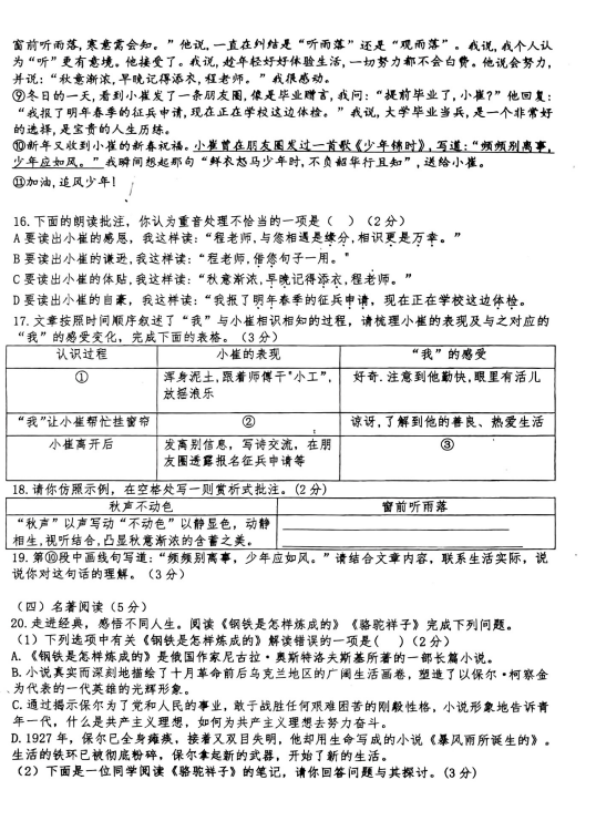 2024-2025學(xué)年吉林吉林九中七年級下冊語文期末真題(圖片版)(5)