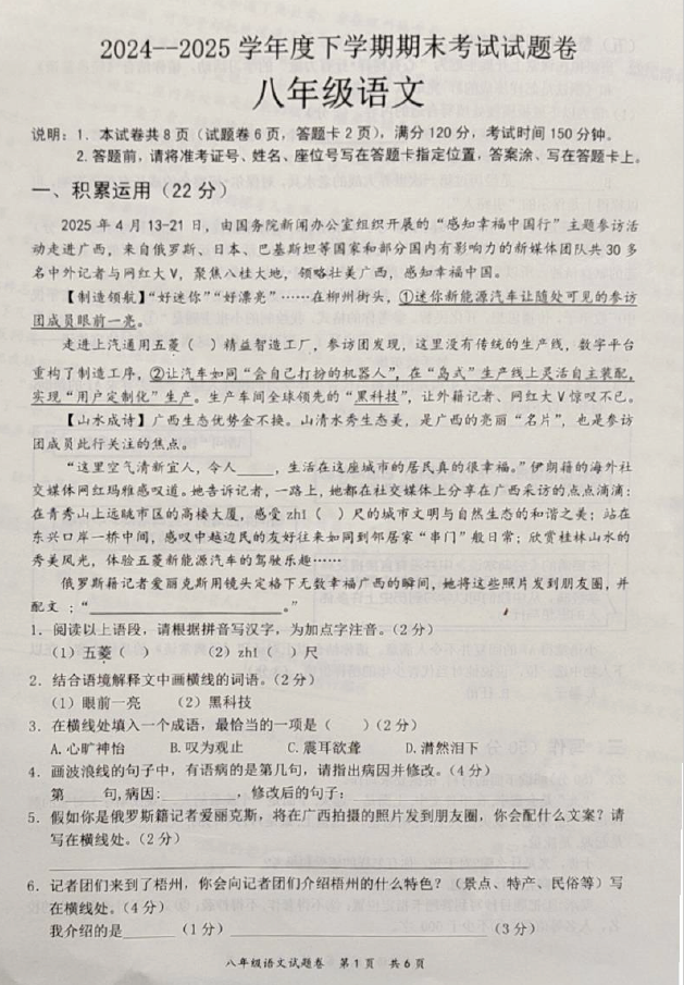 中考網(wǎng)整理了關(guān)于2024-2025學(xué)年廣西梧州藤縣八年級(jí)下學(xué)期語文期末真題(圖片版),希望對(duì)同學(xué)們有所幫助,僅供參考。