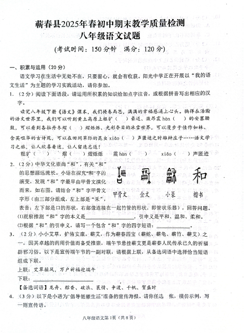 中考網(wǎng)整理了關(guān)于2024-2025學(xué)年湖北黃岡蘄春縣八年級(jí)下學(xué)期語(yǔ)文期末真題(圖片版),希望對(duì)同學(xué)們有所幫助,僅供參考。