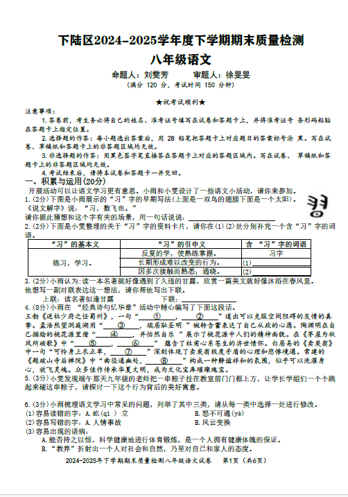 中考網(wǎng)整理了關(guān)于2024-2025學(xué)年湖北黃石下陸區(qū)八年級下學(xué)期語文期末真題(圖片版),希望對同學(xué)們有所幫助,僅供參考。