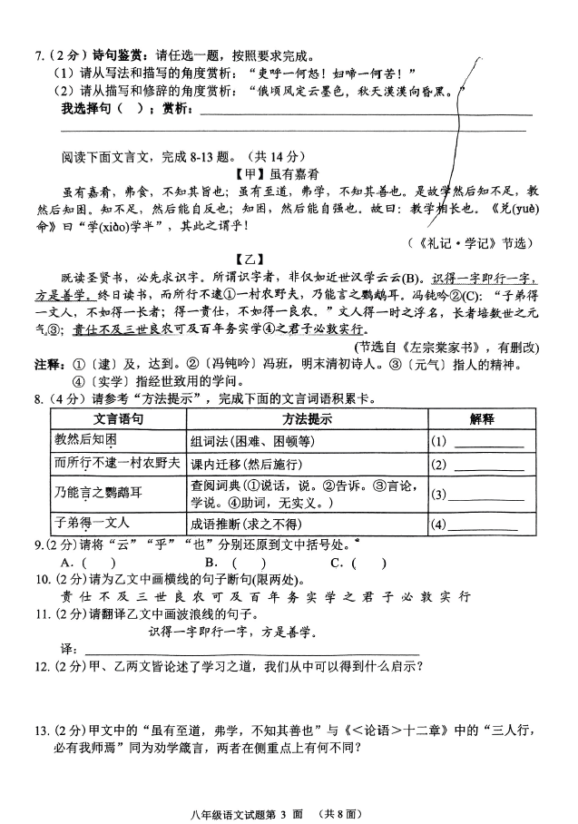 中考答題技巧