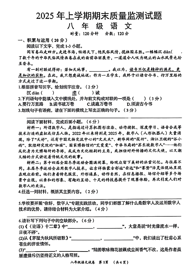 中考網(wǎng)整理了關(guān)于2024-2025學(xué)年湖南岳陽縣八年級下學(xué)期語文期末真題(圖片版),希望對同學(xué)們有所幫助,僅供參考。