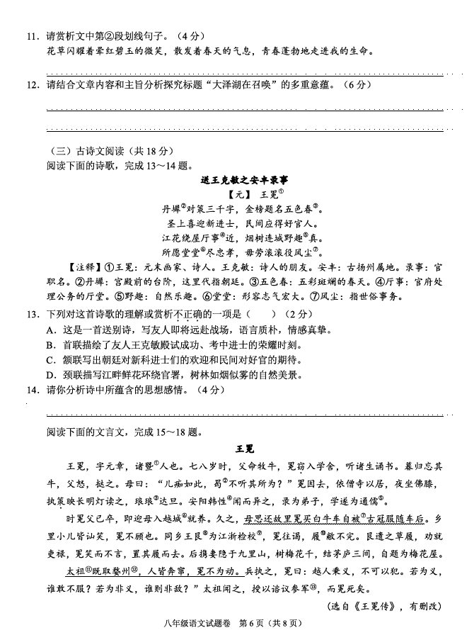 2024-2025學(xué)年湖南長(zhǎng)沙望城區(qū)八年級(jí)下學(xué)期語(yǔ)文期末真題(圖片版)(6)