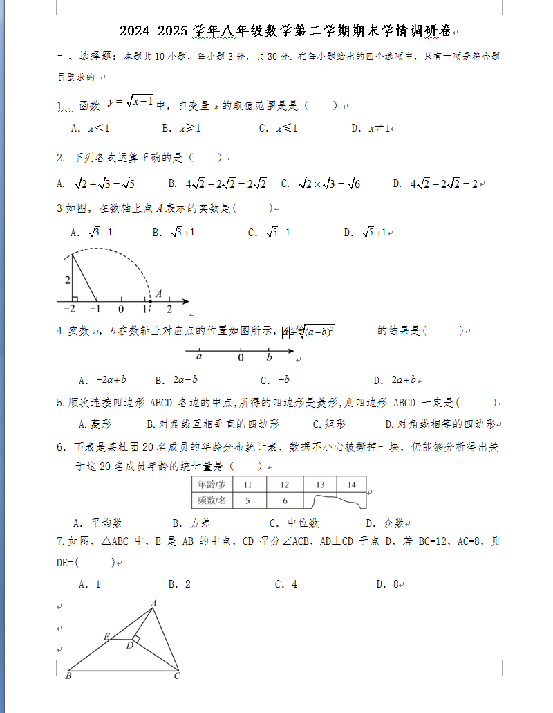 中考網(wǎng)整理了關于2024-2025學年山東濟寧八年級下學期數(shù)學期末真題(圖片版),希望對同學們有所幫助,僅供參考。