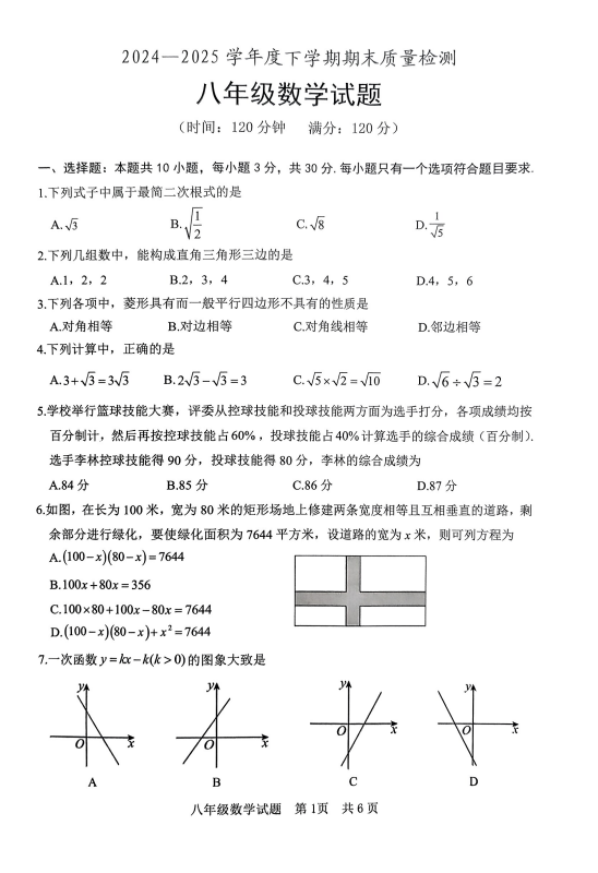 中考網(wǎng)整理了關(guān)于2024-2025學(xué)年山東日照高新區(qū)中學(xué)八年級下學(xué)期數(shù)學(xué)期末真題(圖片版),希望對同學(xué)們有所幫助,僅供參考。