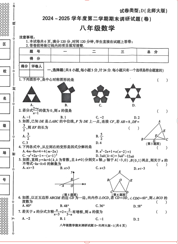 相關(guān)推薦:2024-2025學(xué)年全國(guó)各省市七年級(jí)下冊(cè)各科期末真題及答案匯總